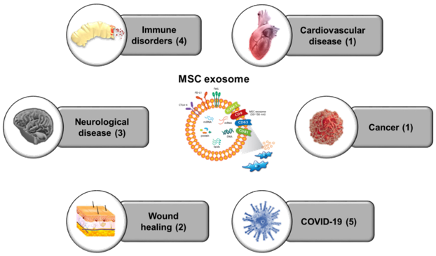 MSC-derived exosomes are the main substances responsible for the paracrine effect of MSCs and are one of the most widely studied and used exosomes. It contains similar therapeutic growth factors and mRNA and other bioactive substances as MSCs, and has therapeutic effects such as tissue repair and immune regulation. At the same time, it has unique advantages, such as: no self-replication ability, so there is no tumorigenicity; The nanoscale volume avoids capillary interception and can reach the damaged site of the central nervous system through the blood-brain barrier to play a biological role.